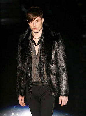 A model presents a creation by Italian stylist Donatella Versace during the Autumn-Winter 2009-2010 men's fashion show, in Milan, Italy, 19 January 2009.